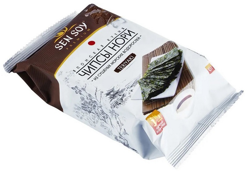 The product is a harmonious combination of the rich taste of Teriyaki soy sauce and the specific taste of seaweed. Crispy nori plates fried in sesame and corn oil retain all the exceptional properties of seaweed, and soy sauce gives the chips a special bright taste. Ingredients: dried seaweed, corn oil, sesame oil, salt, soy sauce (water, soybeans, wheat, salt, sugar, pineapple, ginger, garlic). The recommended cost for retail chains is 82 rubles.