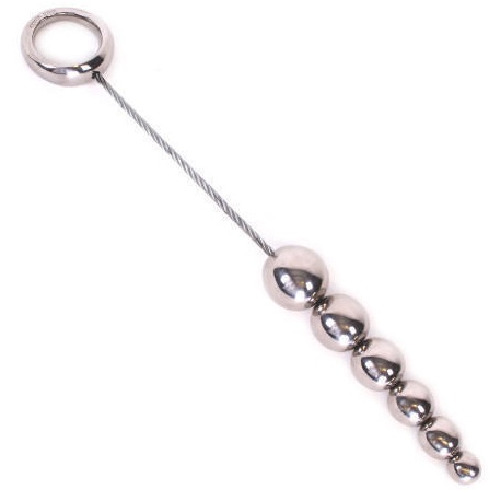 Description of the product: a steel needle, on which metal balls with a mirror coating of different sizes are strung, resembling a Christmas tree in shape. One end is a ring for removing the device, the other is a fixed tip (of the minimum bead diameter), which does not allow the rest of the peas to crumble. Recommended products for anal sex in the hands of professional users.