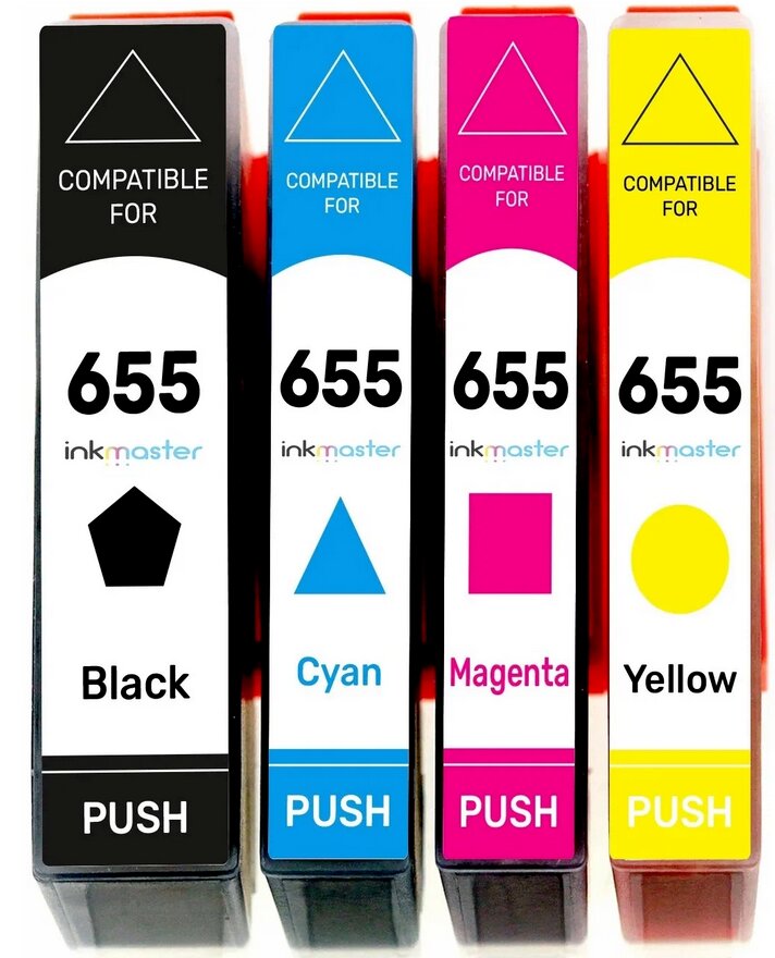 Original HP models #655: CZ112AE Yellow, CZ111AE Magenta, CZ110AE Cyan, CZ109AE Black.