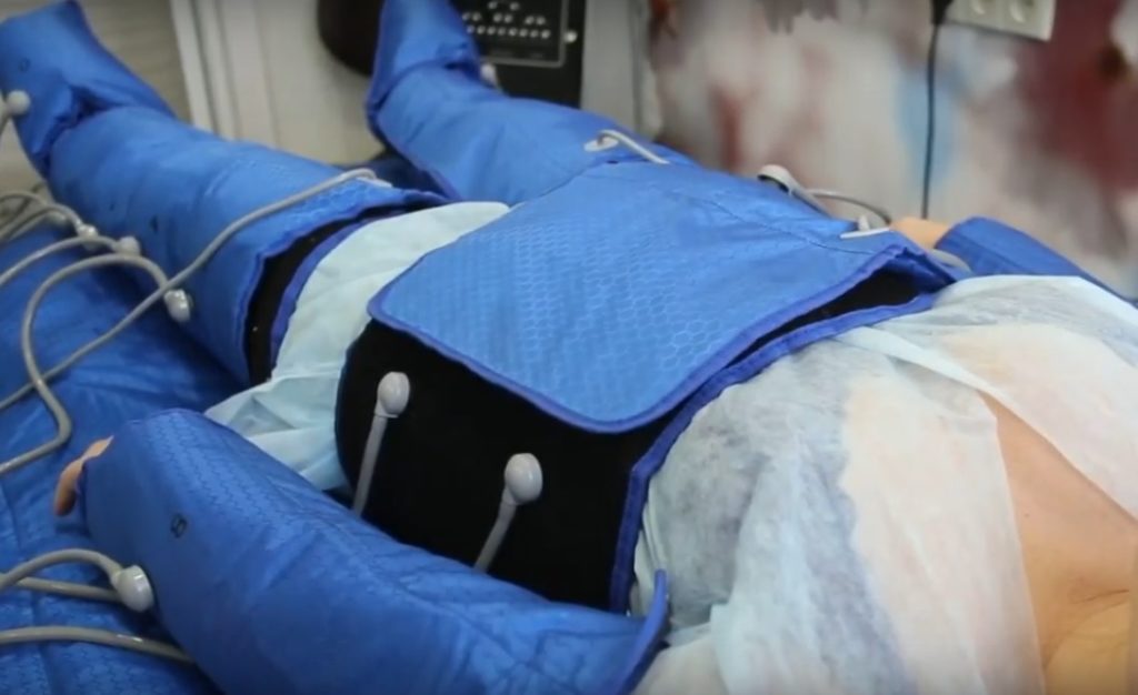To start the procedure, parts of a special suit are put on certain parts of the body. These parts are connected to the device.After that, the specialist sets the necessary parameters, where the intensity and time of exposure are regulated. After starting the program, the selected areas begin to be affected by compressed air pressure. This effect can be compared with the sensations experienced by the hand when measuring pressure. But such an effect during pressotherapy will take place at certain intervals, as if pulsating.