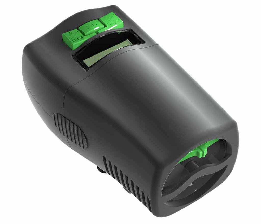 The features of the model include the presence of additional functions, such as the supply of food outside the feeding regime, the saturation of the feed with air. The device runs on batteries. The device has a small monitor that displays all the necessary indicators, including battery discharge.