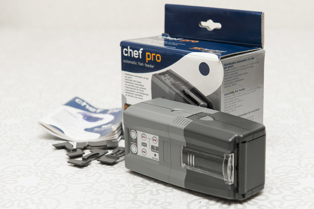 The device can be used for small feed, in granules or special tablets. The portion is adjusted individually, depending on the variety of aquarium inhabitants. The feed hopper is protected from moisture, so even with prolonged use, the feed mixture will not become damp.