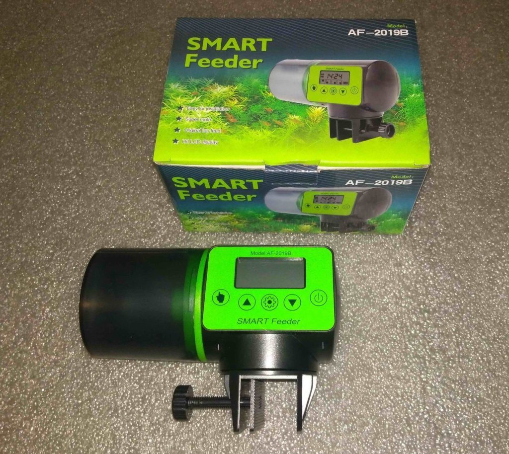 The feeder is designed to distribute feed evenly. The plastic is good quality and will last a long time. Management is carried out using a special toggle switch, which is displayed outside the aquarium. The device can support several types of feed mixture.