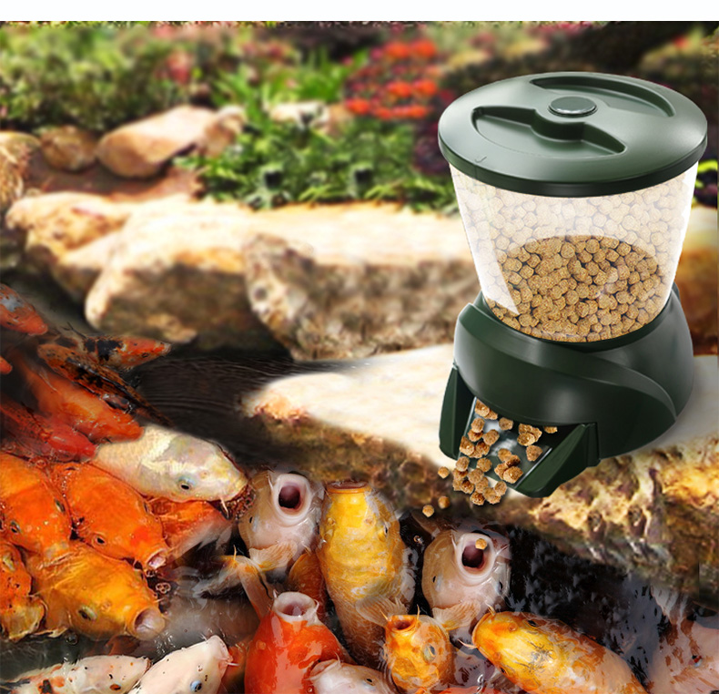 A special drum rotates, and the feed enters the water through a special opening valve. Fish food slowly enters the water so that the aquatic life can fully consume it.