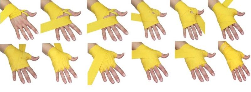 A more sophisticated way of fixing the hand and wrist, providing reliable protection to the ligaments and increasing the power of the blow. The winding technique in this case involves the cross-winding of the bandage on the phalanges of the fingers. The main thing is that it is impossible for wrinkles to appear and the edges of the bandage to twist. For such a fixation of the hand, at least 4.5 meters of bandage will be required, depending on the size of the hand.