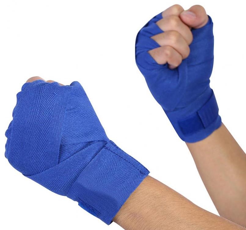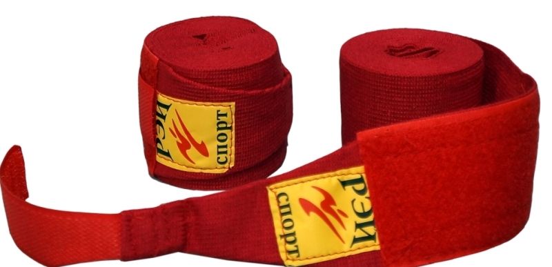 Composition: cotton and synthetic fibers. The bandage is equipped with a ring for the thumb, and after winding on the brush, it is fixed with a hook or Velcro. The purpose of the bandage is the individual protection of the boxer's hands from possible damage to the hand and skin of the hands. Extended glove life.