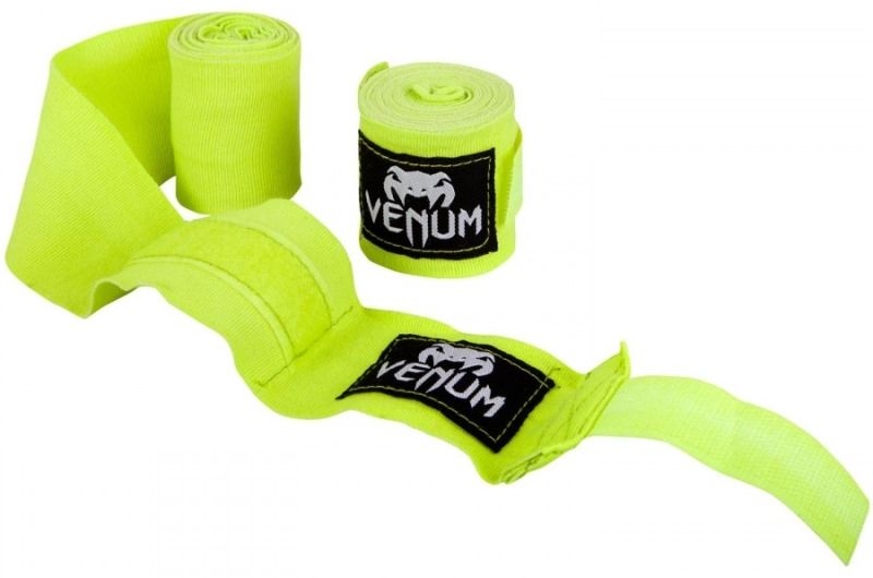 The boxing attribute of the protection of the wrist and hand of the Venum brand is made of natural fabric with the addition of nylon threads, which does not prevent air from reaching the skin of the hands. Absorbs sweat well. Velcro fastening provides durability of fastening. On the outside of the glove, the Venum logo is displayed.