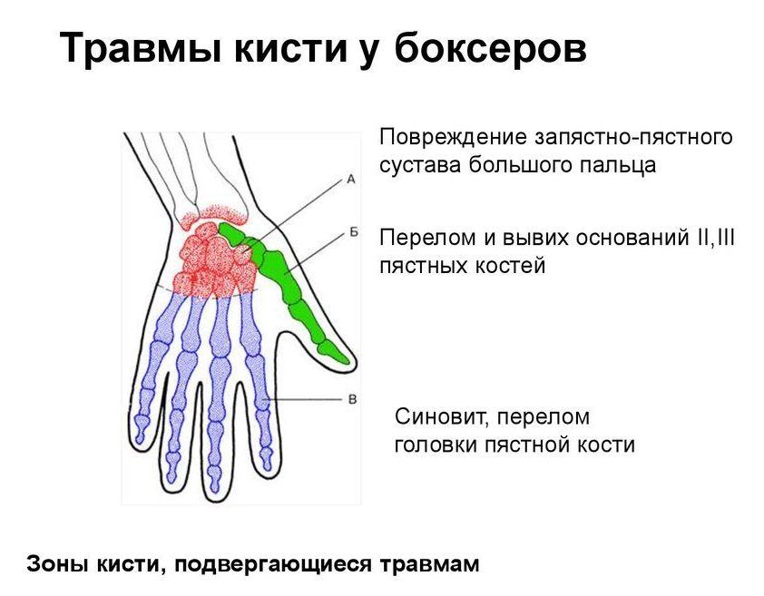 Some types of injuries can be fatal for a boxer and put an end to his career. The most vulnerable place for athletes involved in martial arts is the metacarpophalangeal joints, clenched into a fist. This position of the hand without additional protection is very sensitive, so it is quite easy to get a sprain of the tendons and bruises, fracture and rupture of the boxer's knuckle joint capsule.