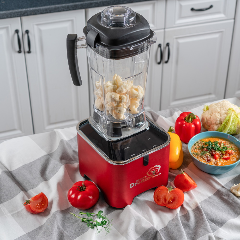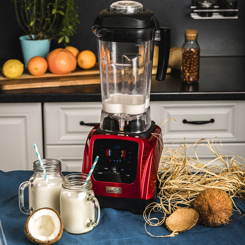 The power of the device is 1500 watts. The base is made of metal. The unit is controlled by an electronic system. The rotation speed is regulated in a smooth mode.The container is made of durable plastic. The blender has automatic adjustment for crushing ice, grinding nuts, making cocktails and smoothies. With the help of attachments, you can chop different ingredients or make a puree out of them. Nut paste is prepared in seconds. To do this, the device has a pulse mode. The control panel is located on the outer surface of the steel case.
