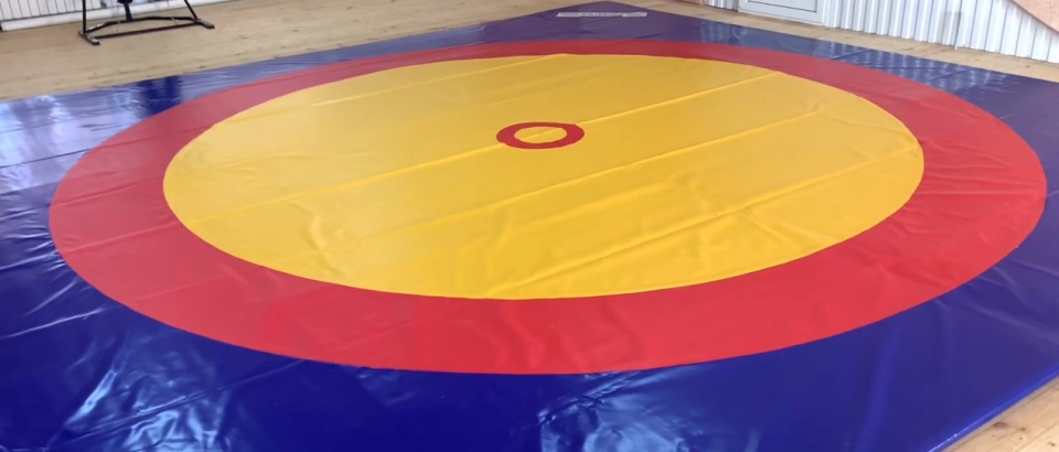 A multi-colour sports product for use in competitions in accordance with the standards of the International Wrestling Federation (UWW). In 2017, it was the official wrestling mat at the Russian Belt Wrestling Championship. Consists of stitched finely porous PPE-X mats with a cellular structure two by one meter five centimeters thick with a density of 180-190 kg / m3. The cover is made of durable three-layer reinforced PVC fabric with a density of 650 kg/m3. Fastening is carried out by Velcro method.