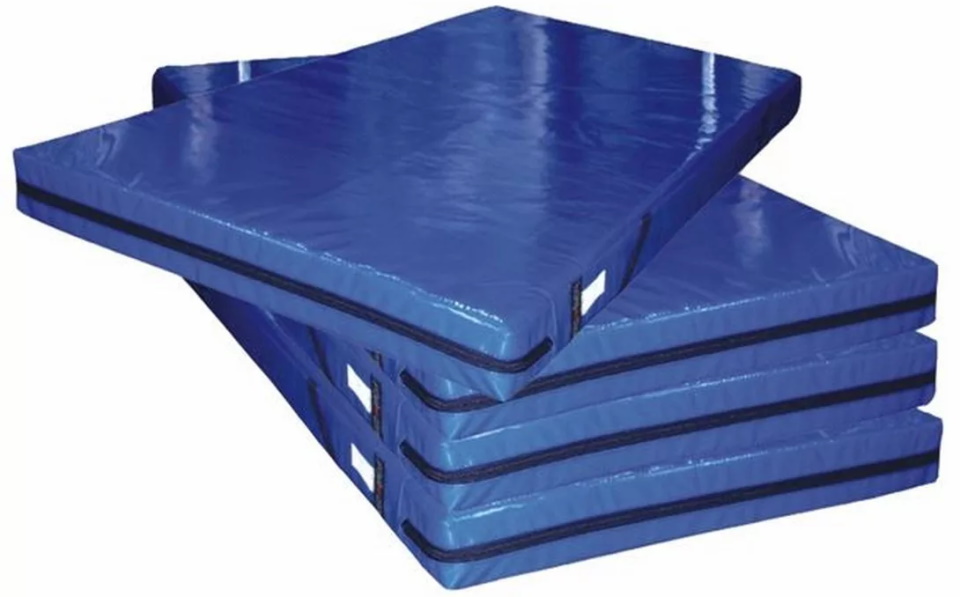 Sports equipment to prevent injuries to athletes during training in clubs and martial arts sections, as well as for sports camps and classes at schools. The mats are made by thermal stitching without the use of adhesive materials from non-crosslinked polyethylene foam 1x2 m thick five centimeters with an average density of 140-160 kg/m3. Reinforced three-layer matt PVC coating with a density of 650 kg/m3. Suitable for outdoor use or for training in rehabilitation centers.