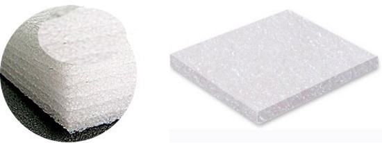 3. Recycled Polyethylene Foam (PPE) is physically cross-linked - has improved energy damping properties, does not absorb moisture, is resistant to special detergent solutions, is resistant to bending, and is also four times lighter than PVV. Varieties of PPE: