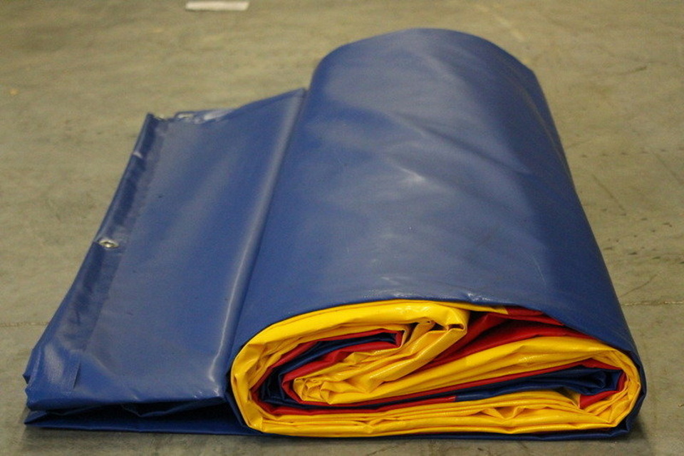 Three-color Russian-made sports equipment to protect athletes from injuries in gyms or clubs. A monolithic product with dimensions of six meters, a thickness of five cm with a seamless coating. Seam welding of semi-gloss PVC cover up to 650 kg/m3 made on equipment from Switzerland. The necessary markings are applied to the coating.