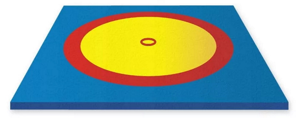 Sports equipment for use in training and tournaments in sambo, judo and other types of wrestling. Circles of yellow, blue and red colors are applied on top in accordance with current standards, fastened with strong welds no more than one millimeter thick. The coating is attached to the mats around the perimeter using eyelets. The product consists of 72 PPE mats measuring two by one meter, five centimeters thick, with a density of up to 180 kg/m3. The total weight of the goods is 500 kg.