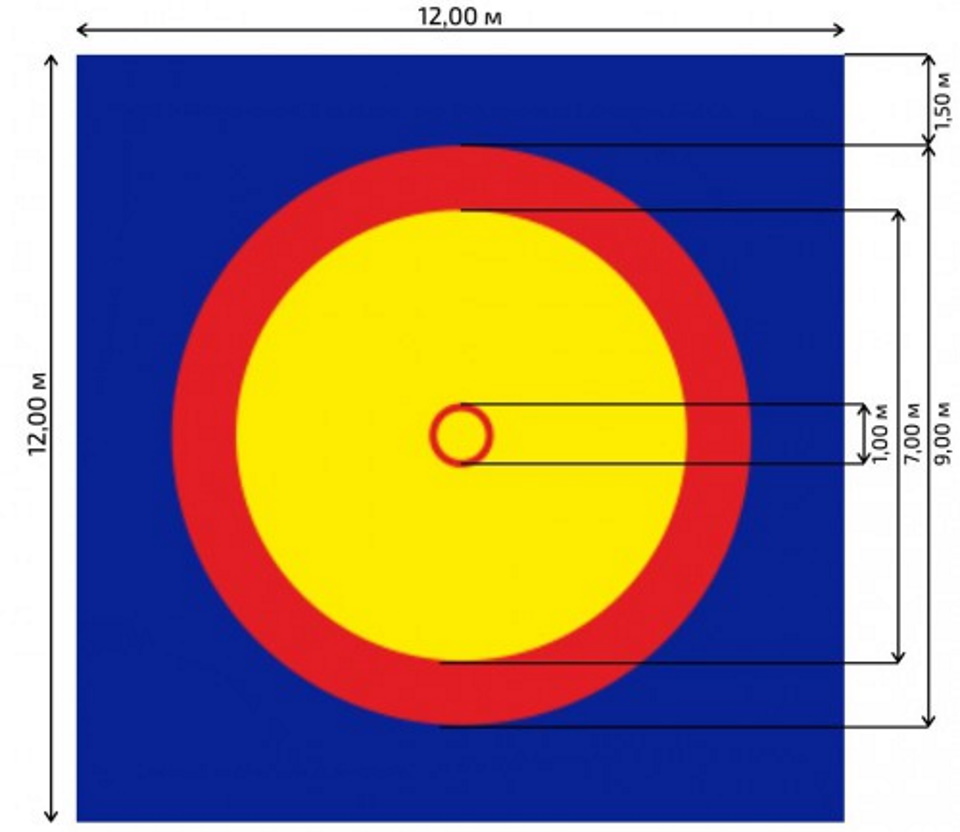 Three-color Russian-made products to prevent injuries in athletes during sparring. Continuous seamless coating of eight, 10, 12 meters and a thickness of four / five centimeters. PVC canopy seams with an average density of up to 650 kg/m3 made on equipment from Switzerland. Standard markings are applied to the upper semi-gloss coating - wrestling, penalty and warning zones.