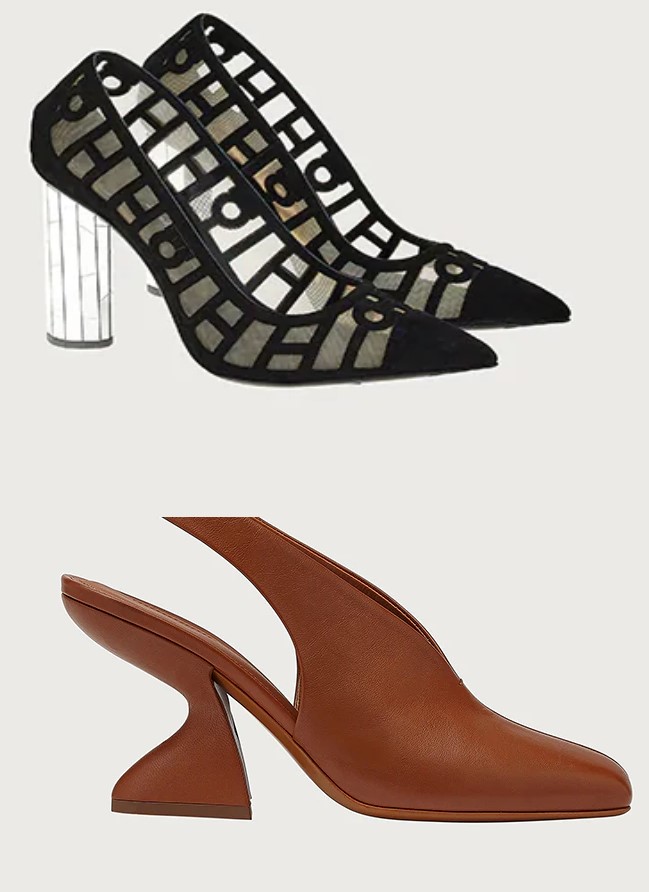 If you want something less classic, then the manufacturer offers to beat it, for example, with the shape of a heel or an unusual top material. The cost of shoes with an open heel is 700 euros.
