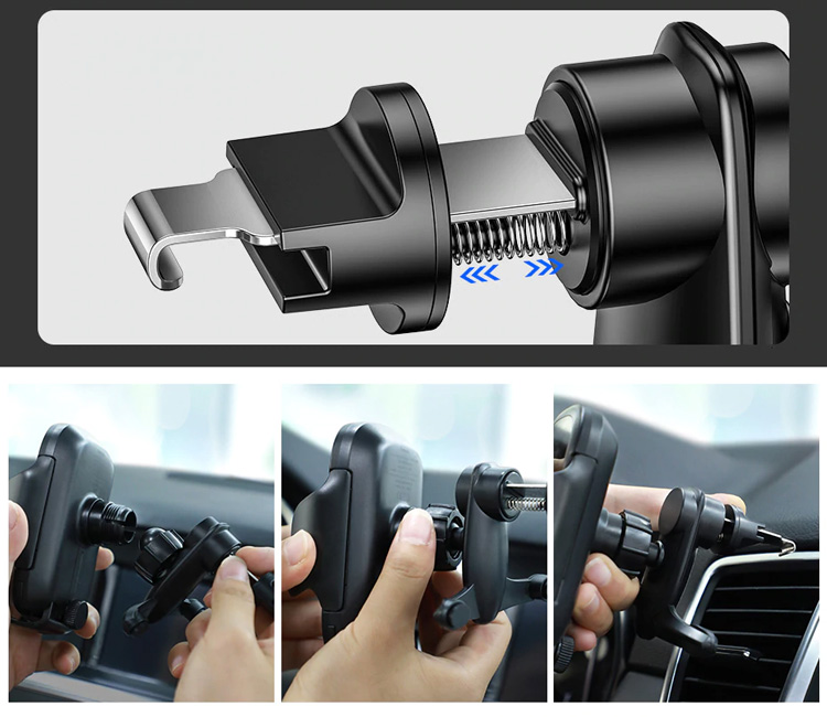 The holder is fastened with a push-button clamp to the air duct. The platform on which the smartphone is installed has the function of rotation on the axis, which allows you to adjust the inclination and position of the device. The gadget is fixed automatically when you bring it to the holder. The accessory is able to hold a phone up to 80 mm wide. According to customer reviews, the battery is perfectly charged using the holder, and even after a long journey, its capacity is replenished by 100%.