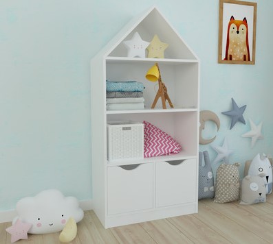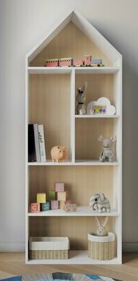 Shelving houses are a popular option for younger children (2-5 years old). It can be used as a house for dolls, soft toys, or you can store books and other little things. Thanks to the open design, it is possible to install boxes or crates. The surface is carefully polished, eliminates the possibility of injury to the baby. The model is made of birch plywood, hypoallergenic and durable. There is a back wall. Dimensions: 65.5x21.8x106.5 cm.Weight: 8 kg. Cost: 5480 rubles.