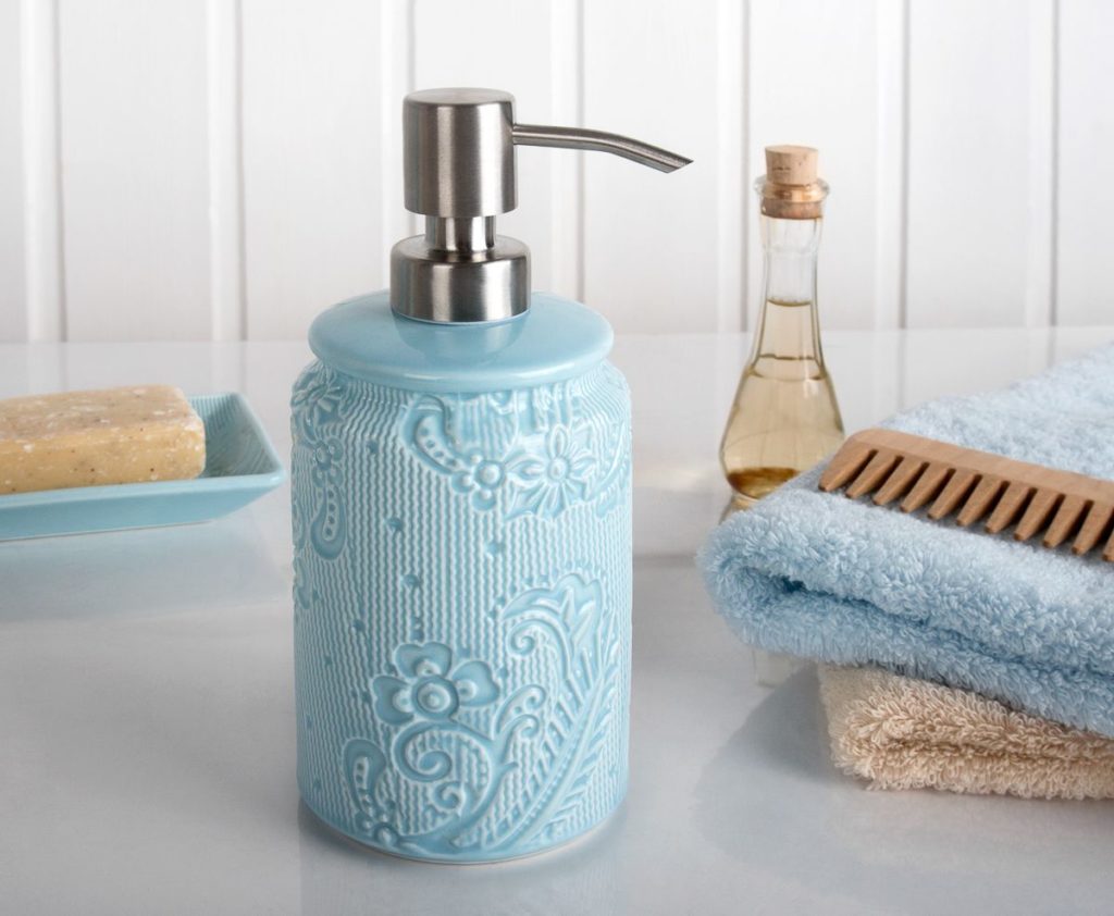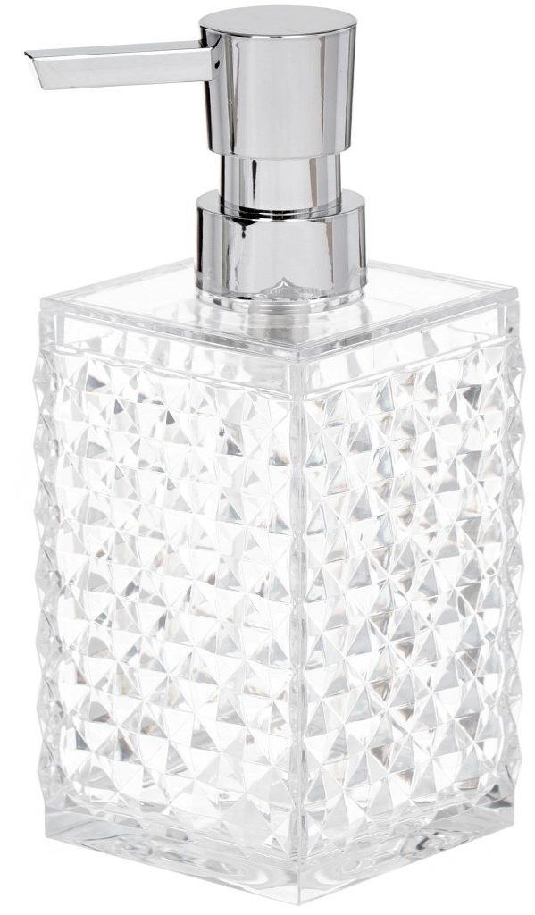 The original design solution will appeal to women. The container has a relief, and the material for its manufacture is dense plastic with small patterns. In appearance, it resembles a crystal decor. But if you accidentally drop it, the container will not break and remain intact, even if it falls on a tile or in a sink.