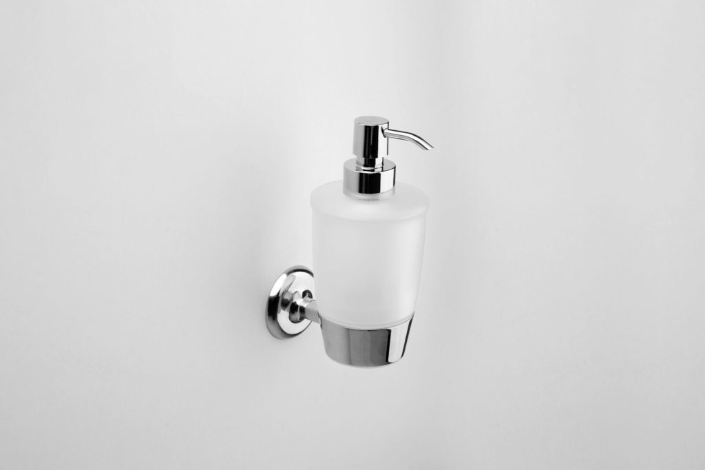 When installing a dispenser in a catering establishment, in a hospital or clinic, in canteens, or chemical laboratories where hygiene requirements are very high, a dispenser that dispenses a portion by pressing the elbow is the best option. Liquid soap comes out when the elbow of a special lever is pressed. This approach reduces the number of microbes. Dispensers of this type do not have an outstanding design, but they are inexpensive and have a capacious capacity.