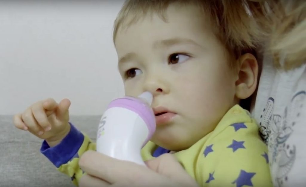 With rhinitis and a runny nose in a child, a mechanical nasal nozzle pump Otrivin Baby, manufactured in Switzerland, can also be used. This is a budget option, however, this does not reduce the efficiency of its work, compared with the two previous leaders in the rating. It consists of three collapsible parts: the central part of the body, the mouthpiece and the tip.