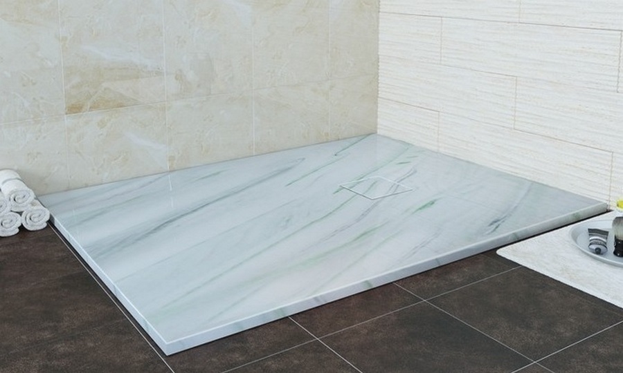 It is used exclusively for design projects, in this case, as a rule, travertine or marble with granite is used. These stones perfectly retain heat, are characterized by increased strength and increased service life. However, such shower cabin items are very massive and require an almost perfectly flat surface for installation. Nevertheless, their increased price is justified by a noble appearance, a degree of high comfort and extreme beauty.