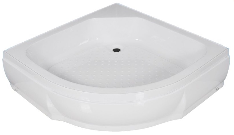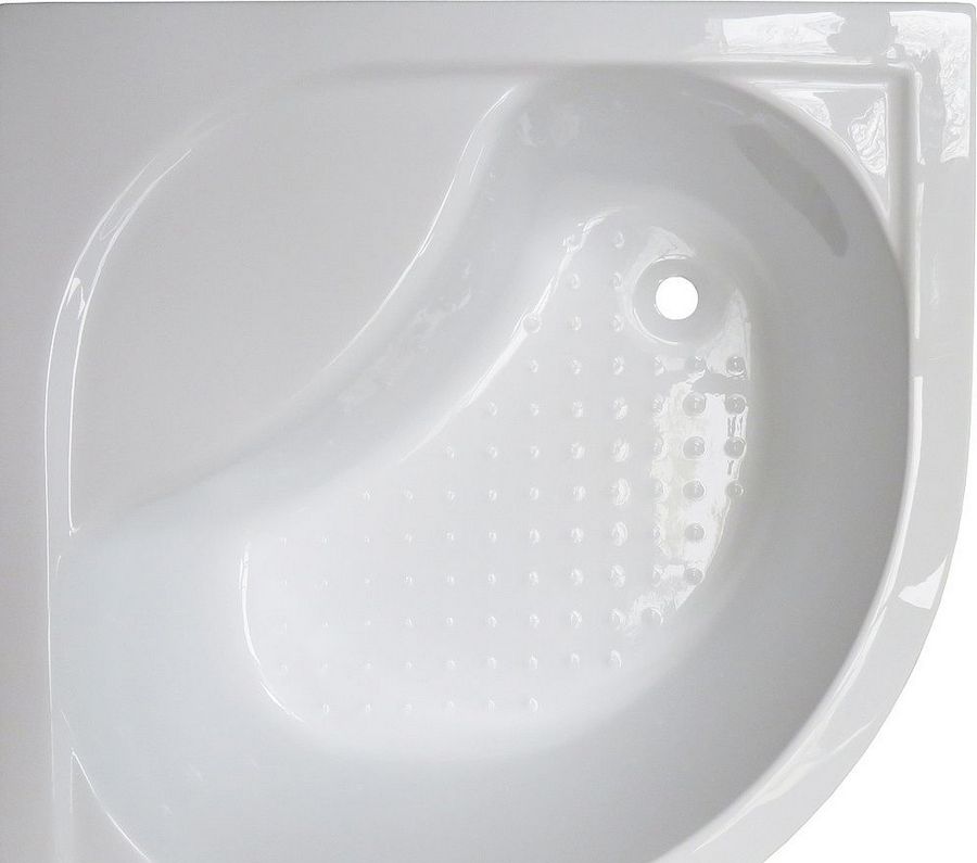 A popular sample from a German manufacturer. Made in a radial shape and suitable for any available area. Execution material - reinforced acrylic. In addition, there are sliding legs, a siphon, an anti-slip coating.