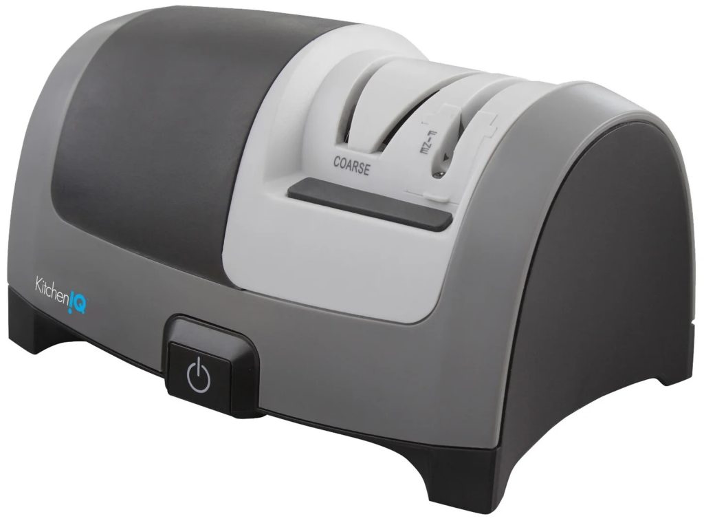 This compact and beautiful electric sharpener will help to solve the problem with self-processing of kitchen appliances. The device is made in the classic version, which is more convenient, according to buyers. The device is easy to operate and has 2 different discs with large and fine grains. This option allows you to sharpen tools in two approaches, guaranteeing better sharpening.