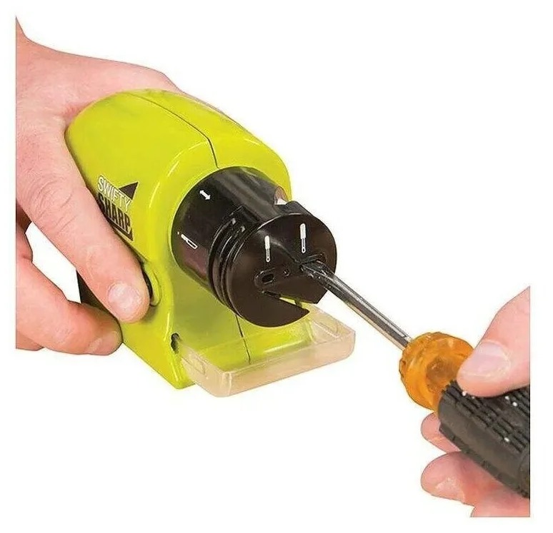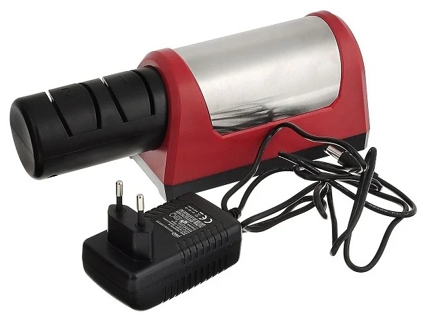 This machine is suitable for simple work and will help in keeping the tools up to standard.This small, practical and inexpensive model is powered by standard AA batteries. A portable device is relevant not only for sharpening steel knives, but also scissors or screwdrivers at home.