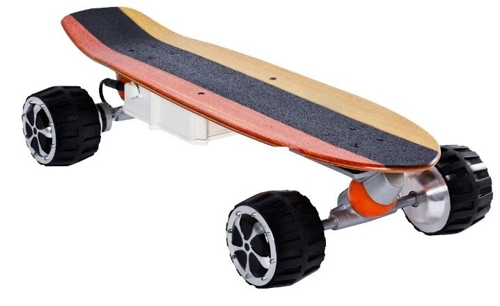 A popular electric skateboard model made of Canadian maple with a maximum acceleration speed of 23 km/h. A load of up to 100 kg is allowed. The gearbox is made on a belt.