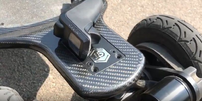 An ultra-modern model of an electric skateboard with two motors and a long mileage of a single charge. High speed is combined with the ability to take a slope up to 15 °. The skateboard has four driving modes: "GT", "SLOW", "FAST" "ECO" with the appropriate speed limits and setting of wheel types and gear selection.