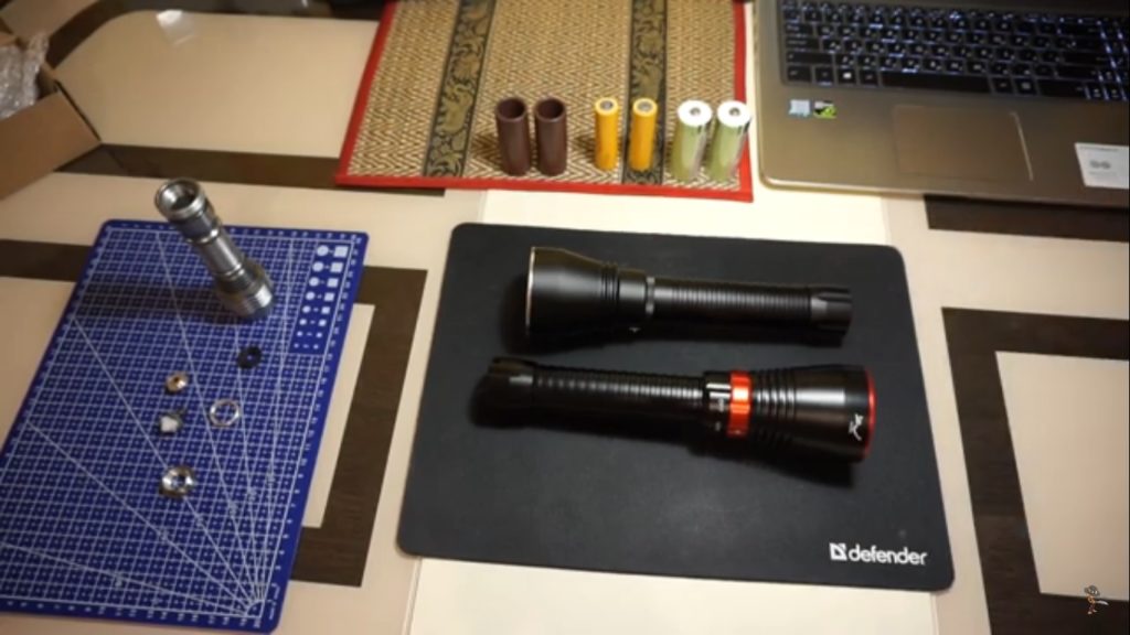 The power of the device is 10 thousand lm, which is ideal for this device. Built-in battery pack includes 8 lithium cells. The kit includes branded charger. Convenience is provided with the help of an iron-type handle.