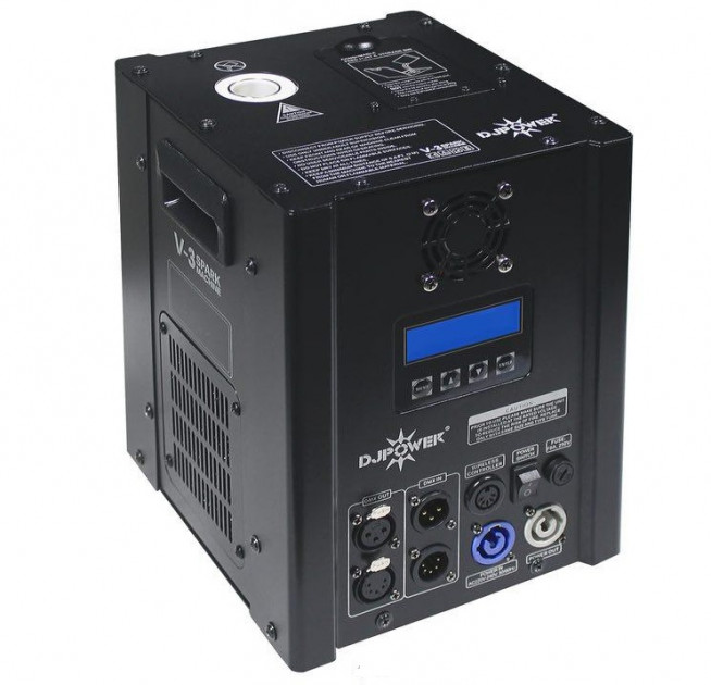 Floor generator, consumes power - 700 watts. The required heating time is just over 3 minutes. The height of the fireworks reaches 5 meters, it can be adjusted in 10 positions.