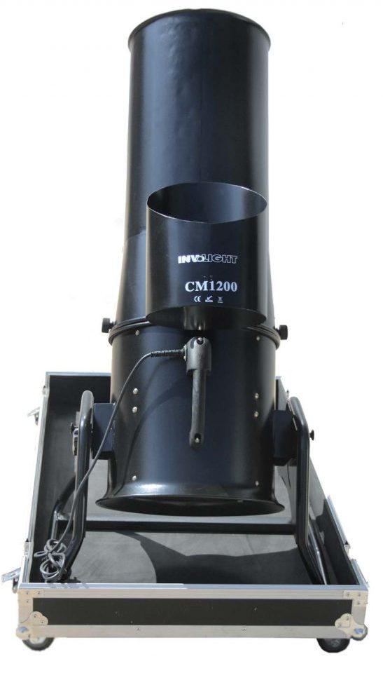 In addition to the paper look, it is allowed to charge with metal confetti or snow. For its operation, only a 220 V network is needed. Power consumption is 400 W. Since the device is powered by the mains, its operation time can be unlimited: the tank holds confetti up to 2 kg (metal - no more than 4 kg), it is possible to supplement it even during operation. The average release rate is approximately 1 kg of confetti in one minute.