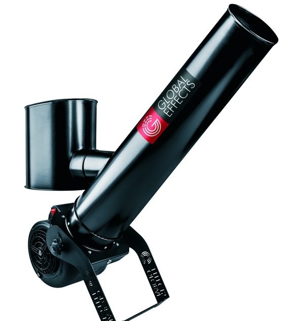 The ejection speed can be adjusted manually. It is also allowed to tilt the device in the desired direction for better effect and dispersion. The ejection range is up to 10 meters.
