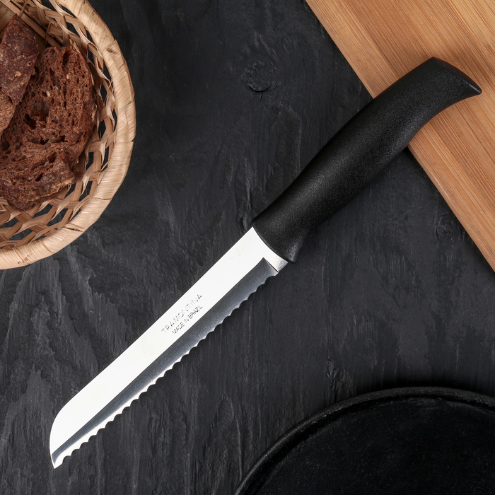 A bread knife is one that is produced specifically for cutting even slices of baked goods and does not crumble them. A properly selected high-quality knife will easily cope with the task. You can select the type for specific tasks (cutting bread, buns or large loaves).