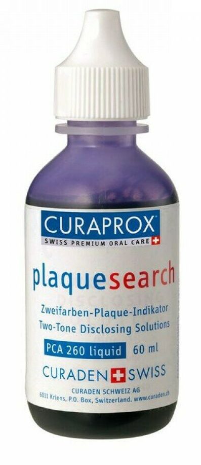 The tool is presented in the form of a liquid. Made in USA. The volume of the bottle is 60 milliliters. Great alternative to chewable tablets. The application gives a two-tone effect: the old plaque turns blue, fresh - red. Consists of organic dyes, glycerin and water. To remove the remedy, you must thoroughly brush your teeth. One bottle for adult patients costs about four thousand rubles.