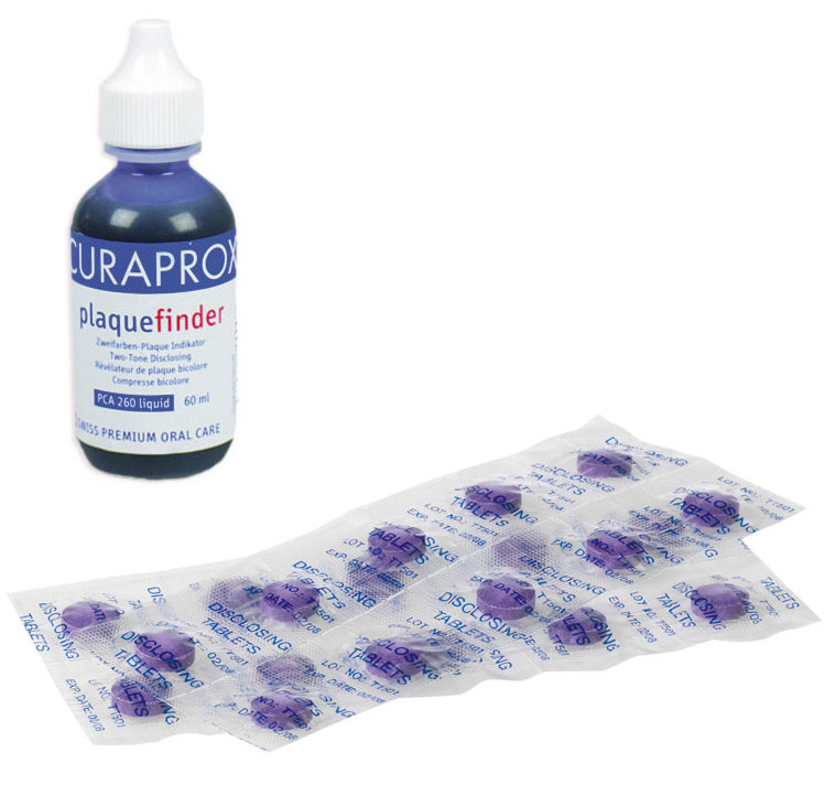Swedish chewable tablets. Suitable for braces. There are ten pieces in one pack. The new plaque turns red, and the one formed half a day ago turns blue. The disadvantage is the staining of clothes and furniture. The drug costs a little more than four hundred rubles.