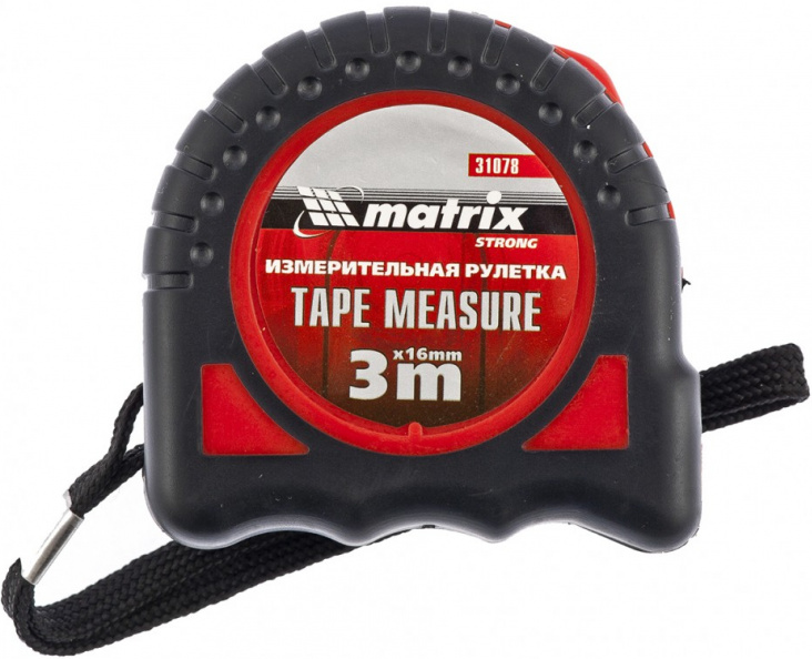 Steel three-meter tape, 16 mm wide, coated with a polymer layer to protect against abrasion. The body material is shock-resistant plastic, which is partially covered with a rubber layer. The hook is made of metal. Two mechanisms for fixing the canvas.The tool is equipped with a convenient strap and a steel latch for attaching to a belt.