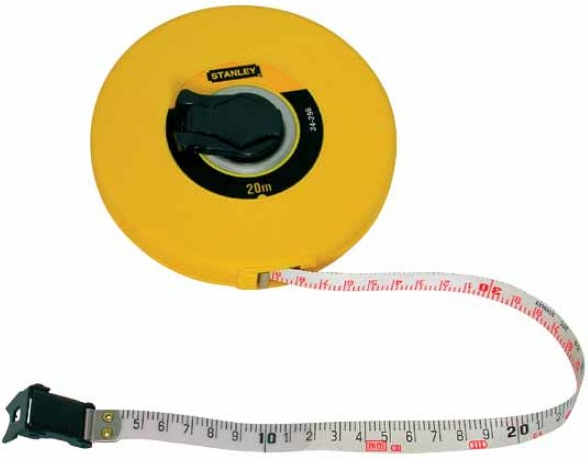 Fiberglass flexible tape with PVC coating, 20 m long and 12.7 mm wide. The body material is shock-resistant ABS plastic. The handle for winding the web folds into the body. A hole is provided for cleaning the tape. The hook is a plastic hook.