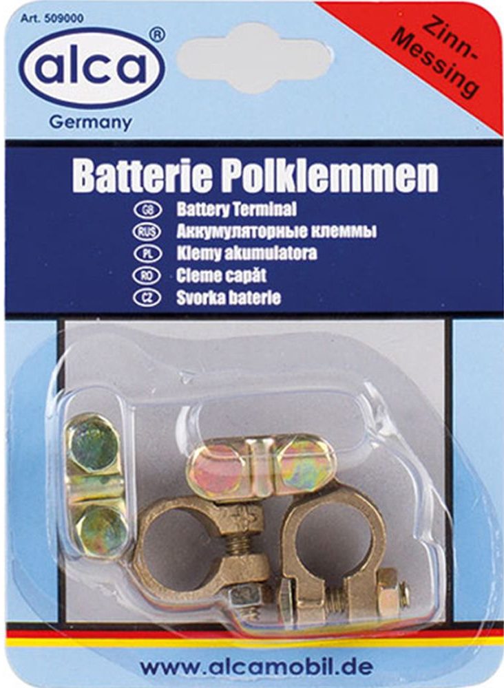 Model from a German manufacturer. Although the accessories of this brand are made in China, the result meets the quality standards of Germany. The company is popular among motorists and enjoys a reputation for producing reliable parts. Model 509000 is made of an alloy of brass and pewter. Such a connection provides stable current conductivity, strong adhesion to the battery cells and reduced resistance. The set includes 2 pcs. dimensions of 110 by 119 mm and 50 mm in height. The average cost of the model is 250 rubles.
