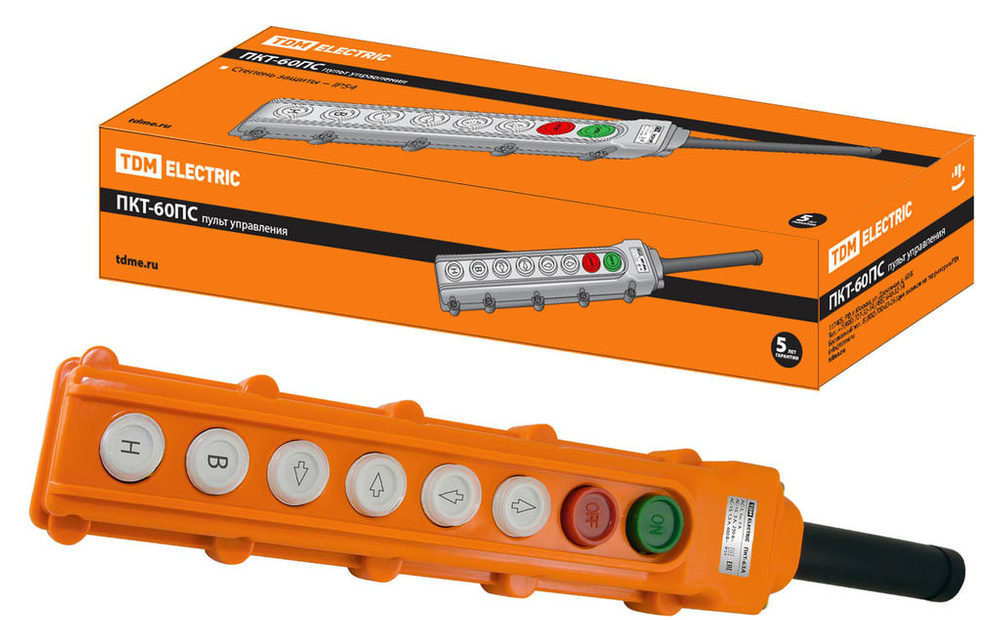 The case of the device is made of plastic, resistant to burning and melting. Tolerates high temperatures without loss of consumer qualities. Body color is orange, buttons are white, pointers are painted black. It is used in AC networks with voltage up to 400 V, DC - up to 600. It can be used in conjunction with reversing or non-reversing starters or contactors. Operating frequency - from 50 to 50 Hz. Overall dimensions: 195*57*65 mm. Weight - 324 grams. The product is sold in a box with technical information and main characteristics. The warranty period is 5 years, which is not enough for this type of device.Service life - not less than 10 years. According to customer reviews, the remote control is characterized by reliability and durability. The average price of a product is 280 rubles.