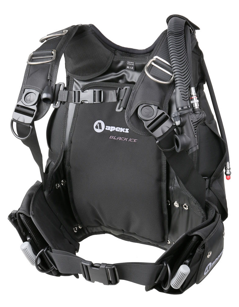 Special straps are adjustable depending on the individual characteristics of the diver's body. The manufacturer offers 3 sizes. The total weight of the model is only 4.3 kg. The Sure Lock II integrated weight system with a capacity of up to 16 kg (for all sizes) is used for difficult dives.