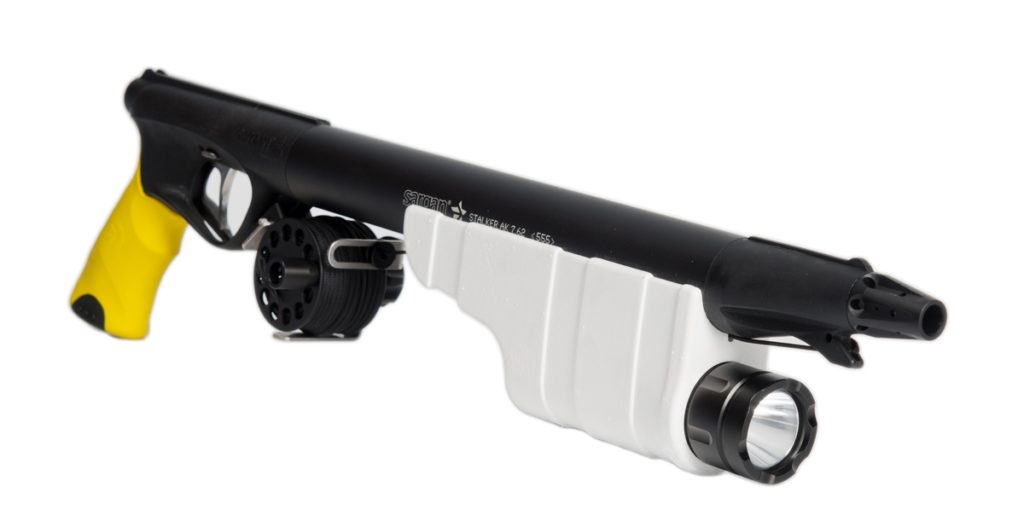 The universal device is provided for spearfishing. Qualitatively fixed on the gun and can independently pop up after the shot. The float is made of foam. The material does not absorb water and protects the gun from scratches during impacts. It can be used not only for a gun, but also for flashlights.