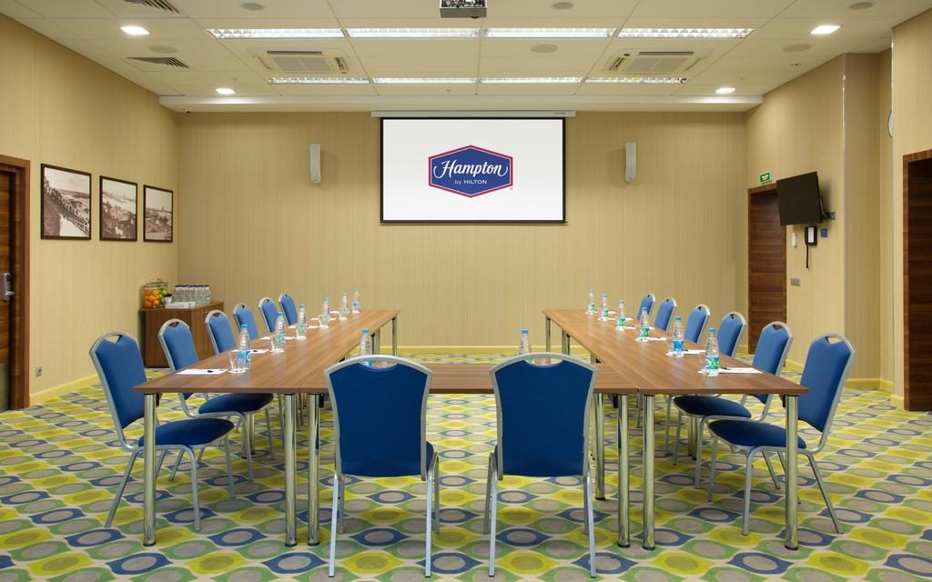 The hotel is located in the business part of the city. The hotel has a convenient access by public transport. The hotel complex provides its guests with a large and a small conference room. The large one can accommodate up to 80 people. The rental price is 1500 rubles per hour. The small hall is designed for 12 people. Room price: 800 rubles per hour. When using, guests can order lunch and drinks. The hotel also provides all the necessary equipment for a comfortable performance.