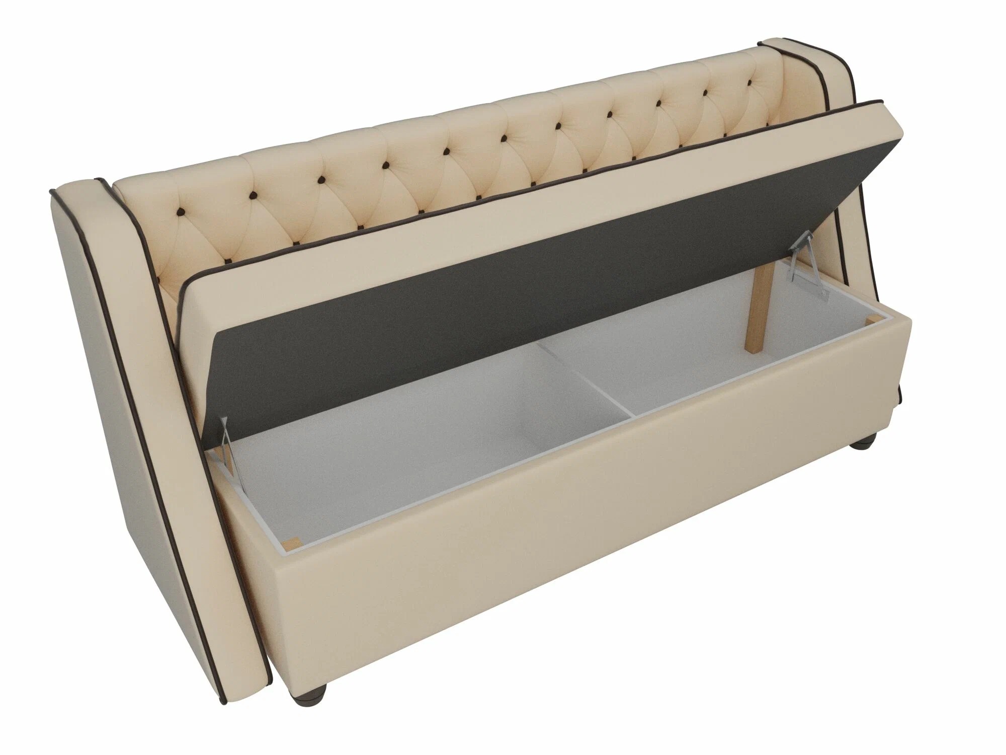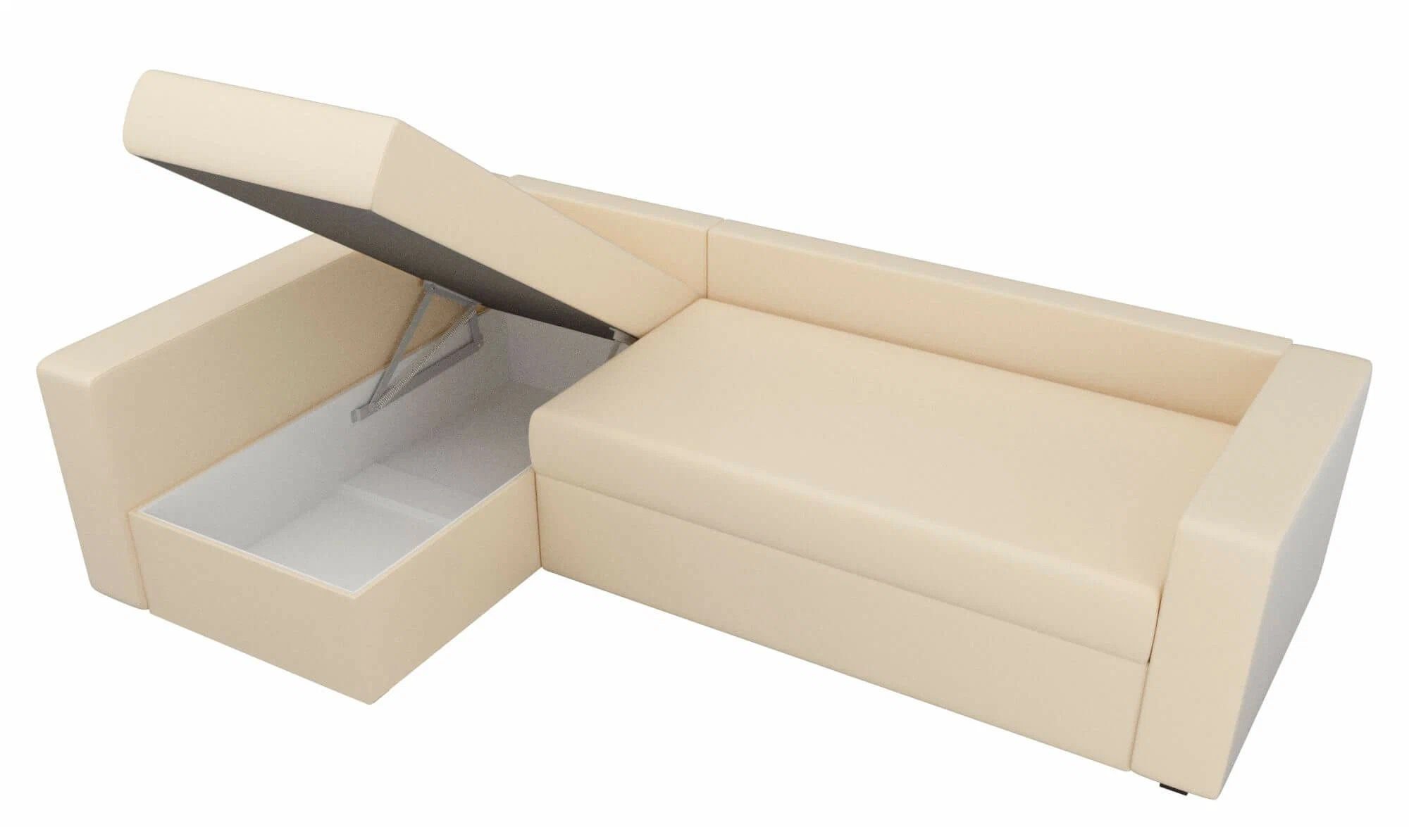 This compact model will be an excellent solution for those who like to change the surroundings around them, as it allows you to set the angle at your discretion. The furniture element is equipped with a practical shelf on the side, as well as a comfortable ottoman with a large laundry box. Which, coupled with a pleasant to the touch, but elastic upholstery, beckons to take a rest. The ottoman is equipped with a simple transformation system that even a fragile girl can handle.