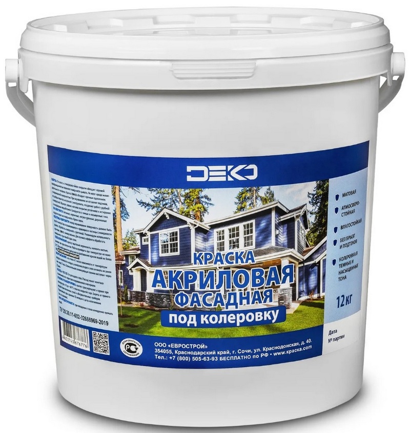 The goods perfectly are suitable for responsible works on decorative finishing of facades of all types of buildings and constructions. It is characterized by excellent decorative and protective qualities, the sample is resistant to atmospheric influences. Environmentally safe, easy to apply, easy to use, has high vapor permeability and good hiding power. After application, it creates an elastic, wear-resistant, breathable, matte white film. Tinting in various colors and shades is allowed. The recommended cost for retail chains is 467 rubles.