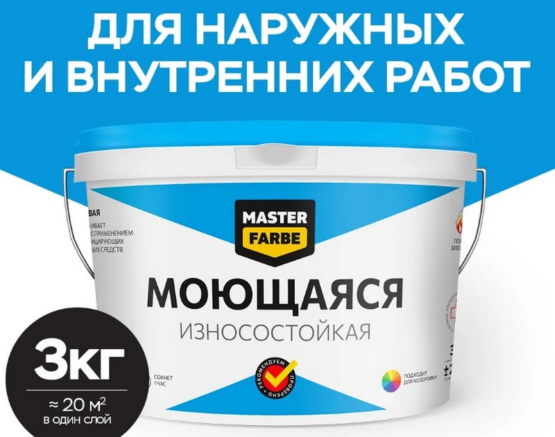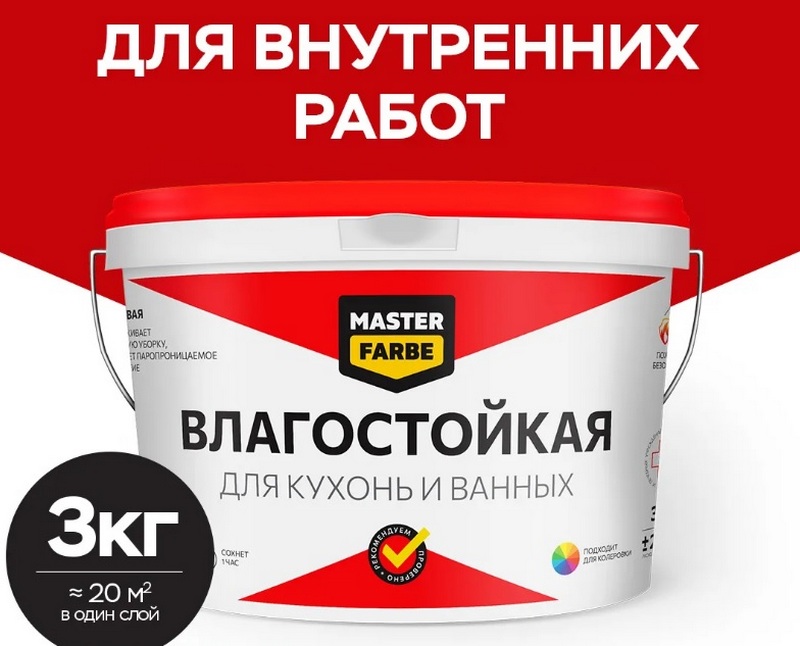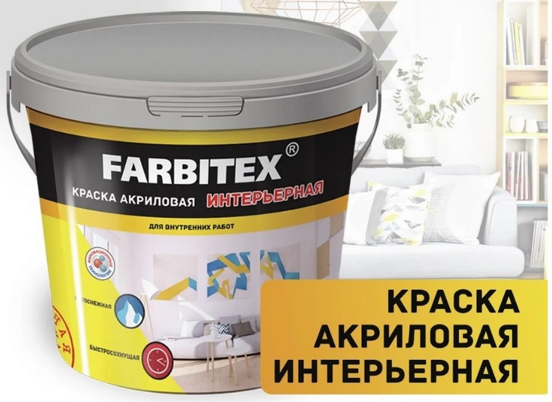 The mixture is intended for work in living rooms and halls, halls, corridors and other interior spaces with normal operational load. Perfectly superimposed on brick, concrete, cement, drywall, plastered and puttied surfaces, textured wallpaper, chipboard and fiberboard. Dries quickly and is virtually odorless. Easy dry cleaning available. Perfectly tinted in pastel colors with Farbitex color paste or TICIANA MIX universal color. The recommended cost for retail chains is 252 rubles.