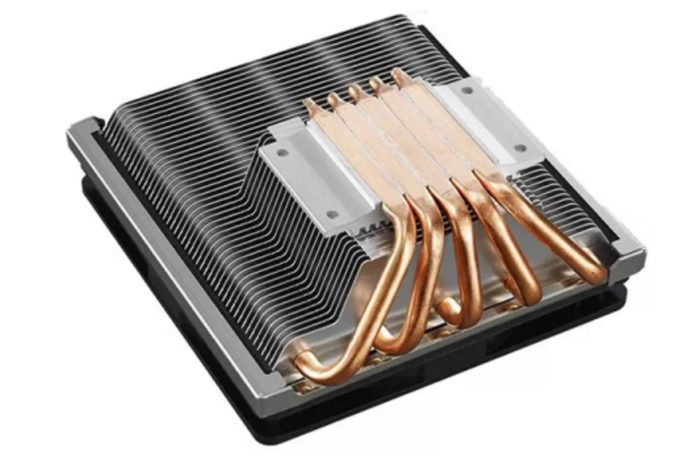 The array is based on copper plates with high heat capacity and uniform heat distribution. Thanks to these properties, the CPU temperature stabilizes at the same level, and high-speed fans with increased noise are not required. However, due to inertia and long heat dissipation, efficiency is limited.