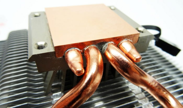 The heat pipes are soldered into the copper base, which greatly increases the efficiency of work.